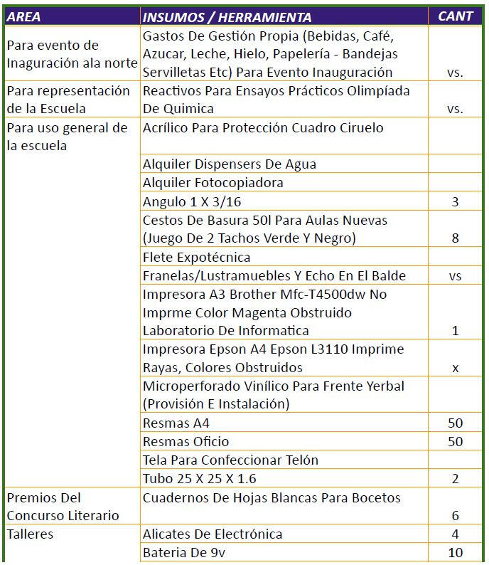 Les contamos las compras que se han realizado durante el año 2024 con el compromiso y aporte de las familias de la Escuela, que ayudan a mejorar la calidad educativa de todos los estudiantes del Fader, contribuyendo al desarrollo de las destrezas necesarias para cada orientación con herramientas y materiales, que hacen una gran diferencia en el conocimiento adquirido.